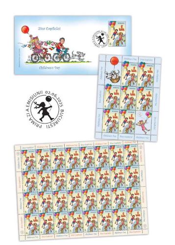 Romfilatelia dedică acestui eveniment o emisiune de mărci poștale – Ziua Copilului – care are în componența sa o marcă poștală și un plic ‘prima zi’, ce va fi introdusă în circulație luni, 2 iunie 2025. Marca poștală, cu valoarea nominală de 8 lei, ilustrează alegoric dorința copiilor de a ‘evada’ într-o lume liberă, plină de lumina soarelui, sub un cer senin, simbol al liniștii și păcii. Nu lipsește o jucărie tradițională care a prins viață și s-a agățat de rochița unei fetițe, simbol al prezenței permanente a jucăriilor în lumea copilăriei. Plicul ‘prima zi’, prezintă o imagine originală a unei excursii în lumea largă, având drept trofee drapelele țărilor vizitate. ”Optimismul personajelor și prezența unui cățeluș de companie, prieten nelipsit al copiilor, respiră speranța unei lumi lipsite de griji și pericole”, arată un comunicat transmis de Romfilatelia.