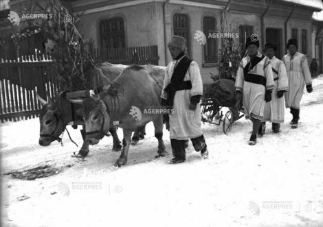 Colindatori cu Pluguşorul la periferia Bucureştiului, 1940. -Foto: (c) Arhiva istorică AGERPRES