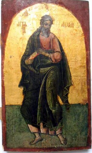 Foto – Icoană de tâmplă reprezentându-l pe Apostolul Andrei. Deţinător: Mănăstirea Hurezi – Romanii de Jos; Autori: Preda și Marin; pictură pe lemn, Școală brâncovenească, datare – 1694; sursa – cimec.ro
