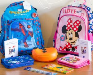 Ghiozdane cu etichetă de nume, separate pentru băieţi şi fete, având în interior creioane grafice și colorate, penare, cutii de sandwich, caiete vocabular (pentru însemnări către părinţi) – aceste rechizite utile alcătuiesc pachetul pregătit de administrația publică județeană, în cadrul programului „Primul ghiozdan”.