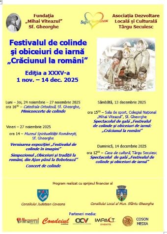Festivalul de colinde și obiceiuri de iarnă „CRĂCIUNUL LA ROMÂNI”, ajuns la a XXXV-a ediție, organizat de Fundația „Mihai Viteazul” Sfântu Gheorghe începe astăzi, 24 noiembrie, cu seria de miniconcerte de colinde susținute de preșcolari și școlari, timp de patru zile, în catedrala Ortodoxă din Sfântu Gheorghe.