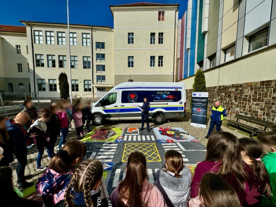 Pentru cei mai mici, polițiștii rutieri au desfășurat activități interactive, în curtea școlii, fiind folosite laboratorul mobil și covorul de educație rutieră, cu ajutorul cărora polițiștii le-au explicat copiilor și au exersat împreună cu aceștia cum să circule corect pentru a reduce riscul de a fi implicați în accidente rutiere. De asemenea, copiii au primit informații despre regulile de circulație și semnificația indicatoarelor rutiere.