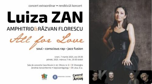 La Casa Muzicii din Sfântu Gheorghe – Centrul de Cultură Arcuș, str. Oltului 6, va avea loc vineri, 7 martie, de la ora 19.30, un concert de excepție denumit „All for Love”, care va fi susținut de Luiza Zan & Amphitrio.