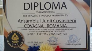 În perioada 26-30 iunie 2019,în Muntenegru s-a desfășurat Festivalul Internațional de Folclor, organizat de către organizația MIOFF. Evenimentul a reunit artiști și ansambluri folclorice din zeci de țări. Printre participanți s-au numărat patru ansambluri din România, unul dintre ele fiind Ansamblul „Junii Covăsneni”, care a reprezentat cu mândrie și profesionalism județul nostru, țara noastră.