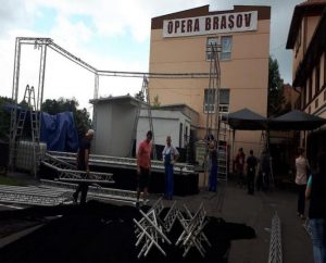 Spațiul destinat reprezentațiilor Operei Brașov a cunoscut odată cu instaurarea Sării de Urgență o transformare spectaculoasă. Pornind de la utilizarea unor structuri metalice și a câtorva panouri, echipele de tehnicieni au transformat micuța curte a Operei Brașov într-o adevărată Grădină de vară, în care au avut loc reprezentații sub cerul liber.