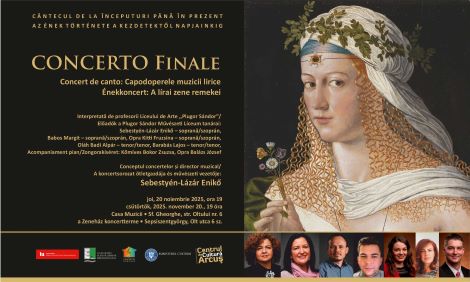 În sala de concerte a Centrului de Cultură Arcuș -Casa Muzicii din Sfântu Gheorghe va avea loc în data de 20 noiembrie 2025, începând cu ora 19:00, evenimentul de încheiere a ciclului de concerte de canto intitulat Capodoperele muzicii lirice.