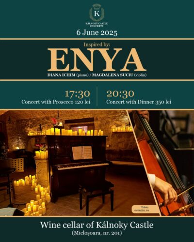 „Pe 6 iunie, vineri, la orele 17:30 şi 20:30, va avea loc prima reprezentaţie a seriei Kalnoky Castle Concerts Summer Season, în care muzica eterică a legendarei Enya va răsuna prin interpretarea a două artiste deosebite: Diana Ichim, la pian şi Magdalena Suciu, la vioară (…) Lumea muzicală Enya este unică: atmosferică, spirituală şi profund emoţionantă. Fuzionând elemente de new age, celtice şi clasice, a creat melodii precum „Only Time”, „May It Be” sau „Orinoco Flow”, care au cucerit inimile a milioane de oameni din întreaga lume”, menţionează organizatorii.