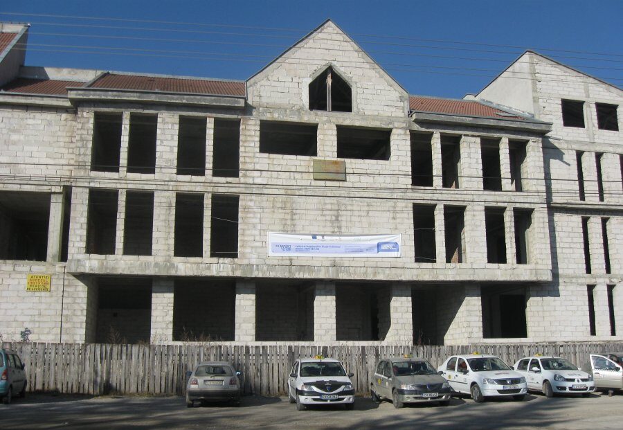 Clădirea cu trei etaje, aflată în centrul oraşului Întorsura Buzăului, a fost ridicată până la acoperiş, dar din 1997 Guvernul nu a mai alocat bani pentru continuarea lucrărilor iar investiţia a fost abandonată.