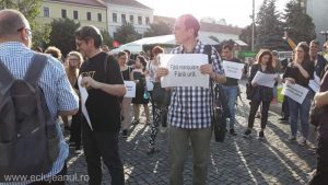 Participanţii la manifestare, români şi maghiari, s-au adunat în Piaţa Unirii din Cluj-Napoca, având asupra lor afişe cu mesaje în română şi în maghiară, precum: „Harghita, Covasna, pământ omenesc”, „Solidaritate împotriva şovinismului”, „Sunt român, nu-s nimănui stăpân, stau liber printre oameni liberi”, „Fără manipulare, fără ură”.