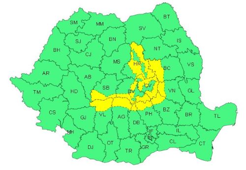 Conform prognozei de specialitate, în intervalul 29 noiembrie, ora 10:00 – 30 noiembrie, ora 10:00, va fi Cod galben de vreme rea în judeţele Argeş, Bacău, Braşov, Buzău, Covasna, Dâmboviţa, Harghita, Prahova, Sibiu, Vâlcea şi Vrancea.