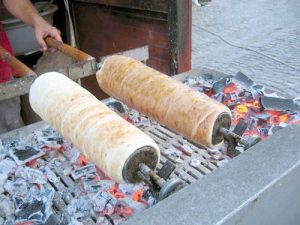 Potrivit acestuia, mai mulţi specialişti, care au refăcut „arborele genealogic” al kürtőskalács-ului, au descoperit că acesta are nouă „verişori” în Europa. Printre ei, Baumkuchen, o specialitate răspândită în Germania, Sakotis, Gâteau a la broche sau Sekacz, un desert popular în Lituania, Franţa şi Polonia, Prugeltorte sau Prugelkrapfen din Austria, Spettekaka din sudul Suediei, Trdlo, Trdelnik sau Trdelnice din Cehia şi Slovacia şi Baumstriezel, o specialitate populară în satele săseşti din Transilvania.