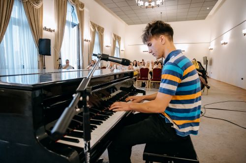 Doi copii talentați care studiază pianul de la vârste fragede, laureați ai mai multor concursuri locale, județene și chiar naționale.