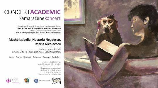 La Centrul de Cultură Arcuș (Casa Muzicii, Sf. Gheorghe, str. Oltului nr. 6) va avea loc astăzi, 8 aprilie, de la ora 18.00, recitalul studenților clasei de flaut prof. dr. Ignác Filip și prof. asoc. Denisa Ifrim.