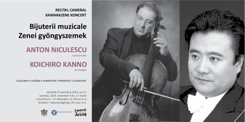 În Sala de Concerte al Centrului de Cultură Arcuș (Casa Muzicii, Sf. Gheorghe, str. Oltului nr. 6), va avea loc sâmbătă, 9 noiembrie a.c., începând cu ora 17.oo, un concert cameral de excepție susținut de Anton Niculescu, violoncelistul care timp de opt ani a fost membru în orchestra prestigiosului Operei Scala din Milano, în mai multe triouri și cvartete din Italia, Germania, Austria și România, și pianistul japonez Koichiro Kanno. Ambii muzicieni sunt vechi prieteni ai centrului și al publicului meloman din Sf. Gheorghe.