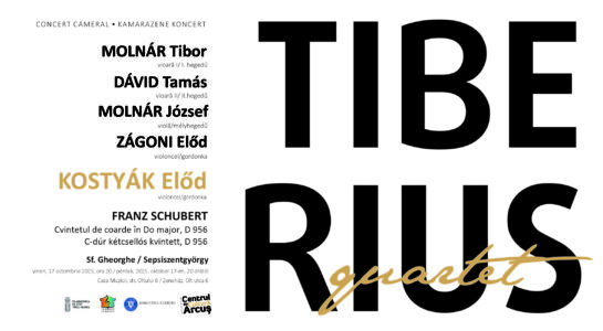 Centrul de Cultură Arcuş – Casa Muzicii din Sfântu Gheorghe organizează vineri, 17 octombrie a.c., ora 20.00, un concert cameral extraordinar susţinut de cvartetul TIBERIUS și de violoncelistul Előd KOSTYÁK.