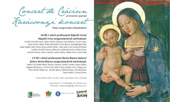 Centrul de Cultură Arcuș – Casa Muzicii din Sfântu Gheorghe găzduiește astăzi, 3 decembrie, începând cu ora 16.00, un dublu concert cameral susținut de tineri și foarte tineri pianiști ai Liceului de Artă „Plugor Sándor” și ai sistemului privat de învățământ.