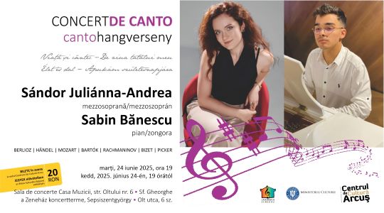Centrul de Cultură ArcuşCasa Muzicii din Sfântu Gheorghe organizează marți,  24 iunie, începând cu  ora 19.00, un concert extraordinar de canto cu titlul „Viață și cântec (De ziua tatălui meu)”, susținut de mezzosoprana Juliánna-Andrea Sándor și de pianistul Sabin Bănescu.