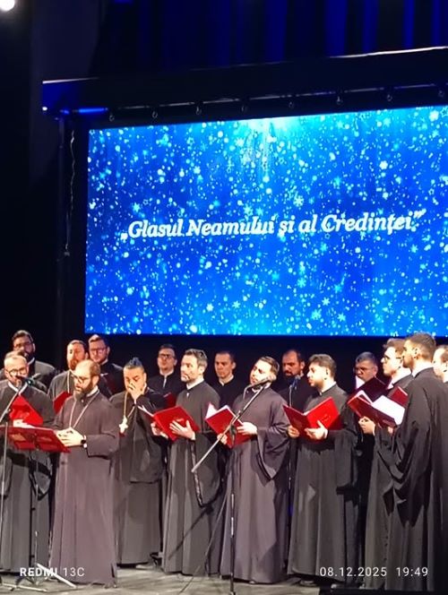 Forumul Civic al Românilor din Covasna, Harghita și Mureș anunță cu deosebită bucurie încheierea Concertului de Colinde „Glasul Neamului și al Credinței”, un eveniment care a reunit în data de 8 decembrie, la Târgu Mureș, glasurile inconfundabile ale Grupului Psaltic TRONOS al Patriarhiei Române, sub conducerea părintelui arhidiacon Mihail Bucă. Seara a fost una încărcată de profunzime și emoție, în care colindele și cântările patriotice au creat o atmosferă ce a atins inimile tuturor participanților, dând impresia că un cor nevăzut de îngeri a coborât pentru a aduce lumină, mângâiere și pace înaintea marelui praznic al Nașterii Domnului.