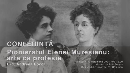 Muzeul de Artă Brașov invită publicul sâmbătă, 12 octombrie 2024, de la ora 12.00, la conferința „Pionieratul Elenei Mureșianu: Arta ca profesie”, susținută de drd. Andreea Pocol. Evenimentul e dedicat redescoperirii primei femei cu studii de specialitate în artă, din spațiul românesc. Conferința face parte din proiectul „Her Art Story” și va oferi o incursiune captivantă în viața și opera acestei figuri emblematice, prezentând creațiile și corespondența personală a artistei. Evenimentul va avea loc în Sala unu, la sediul muzeului din Bulevardul Eroilor, nr. 21. Taxa de participare este de 10 lei – informează Biroul de Comunicare și PR al MAB.