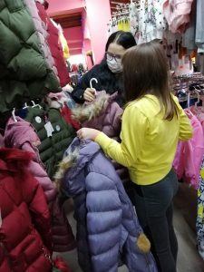 Pentru că aveam în plan să mai bucurăm încă trei copii din Zăbala crescuți doar de tatăl lor, ne-am luat rămas bun de la familia din Oituz și am făcut cale întoarsă  către Târgu Secuiesc. Acolo unde prin amabilitatea doamnei preotese Elena Cosneanu, care ne-a scutit de un drum până la Zăbala, ne-am întâlnit cu fetele la magazin, unde spre uimirea lor, fără restricții, și-au ales ce au vrut să-și cumpere de încălțat și de îmbrăcat: geci groase de iarnă, încălțăminte îmblănite, treninguri, bluze, pantaloni, căciulițe, mănuși și șosete care să le țină cald, așa cum am procedat și cu copiii familiei din Oituz.