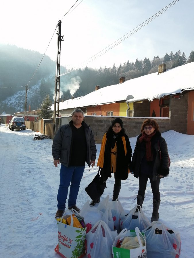 Astfel, miercuri 29 decembrie 2021, împreună cu frumoasa familie Baciu din R.Vâlcea și însoțiți de Gabriela Damian, cadru didactic al Școlii primare din Oituz de Covasna, ne-am deplasat în colonie, așa cum este cunoscută zona, la una dintre multele familii cu mulți copii pentru care orice ajutor este binevenit. Întâmplarea minunată a făcut să aflu că în acea casă se află patru copii cu vârste cuprinse între 7 și 16 ani, printre care o fetiță extrem de sârguincioasă pe carnetul căreia strălucesc fb-urile, semn că pentru ea școala este una dintre preocupările principale. Mamei care se ocupă cu toată responsabilitatea de copii i se cuvin toate cuvintele de laudă. Știe și ea că singura salvare a copiilor să se desprindă de aceste locuri care nu le oferă niciun viitor este să învețe bine pentru a-și clădi un viitor fără griji. Faptul că au pus învățătura mai presus de orice și nu s-au lăsat înfrânți de greutăți, povestea tragică din spatele ușilor și trauma psihică prin care au trecut acești copii la un moment dat, m-au făcut să aleg această familie.