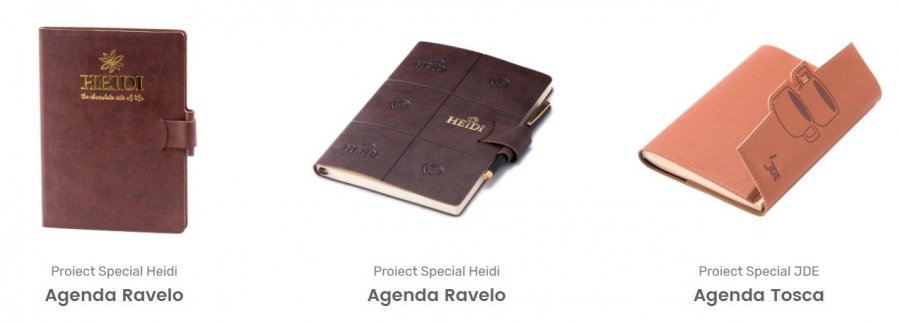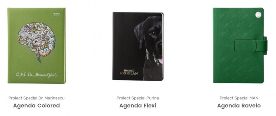 Desi retelele de social media reprezinta surse infinite de inspiratie, pentru aceasta sinteza am consultat portofoliul firmei UNIKA –probabil cel mai mare furnizor de agende din Romania, la sectiunea de agende speciale: https://www.unika.com.ro/proiecte_speciale_agende_1.hts
