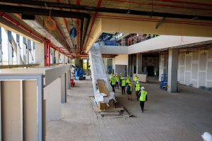 Acum se lucrează la confecţia metalică şi la montarea grinzilor mari de la acoperiş. La finele lunii septembrie este termenul pentru finalizarea completă a acoperişului. Se lucrează la închiderea clădirii cu perete-cortină, adică profile de aluminiu şi sticlă, astfel încât până la sfârşitul lunii noiembrie clădirea să fie complet închisă, pentru a putea începe să lucrăm la finisajele interioare. În egală măsură, finisajele interioare şi lucrările la instalaţii – tubulatură, ţevi, cablaje – au fost demarate pe toate fronturile disponibile, atât la subsol şi parter, cât şi parţial la etaj. Partea de instalaţii propriu-zise urmează acestor etape, iar echipamentele aeroportuare vor fi montate în ultimul trimestru al execuţiei.