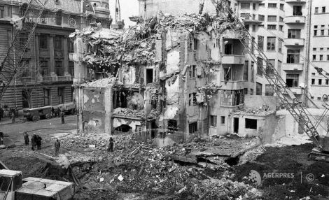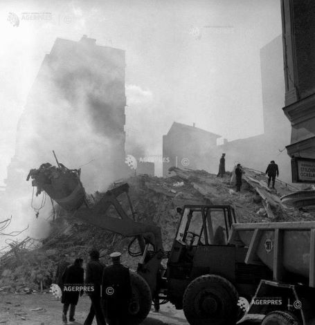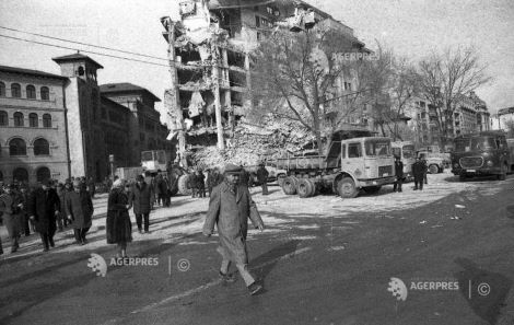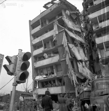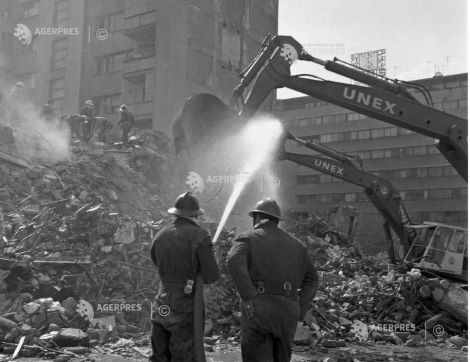* Explicaţie foto din deschidere: Echipe mixte formate din forţe armate, voluntari civili şi specialiști acţionează in zona blocului „Scala” din Bucureşti, după cutremurul din 4 martie 1977.
