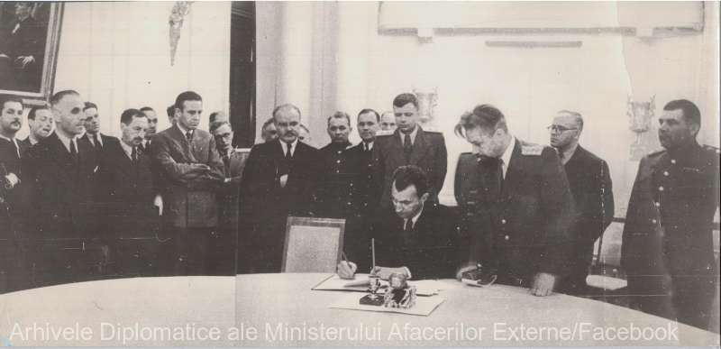 În ziua de 12 septembrie 1944 era semnată, la Moscova, Convenţia de armistiţiu între guvernul României, pe de o parte, şi guvernele Uniunii Sovietice, Marii Britanii şi Statelor Unite ale Americii, pe de altă parte. Documentul a fost semnat de L. Pătrăşcanu, D. Dămăceanu, B. Ştirbey, G. Popp, din partea guvernului român, şi de mareşalul sovietic R.I. Malinovski, din partea URSS, SUA şi a Marii Britanii.