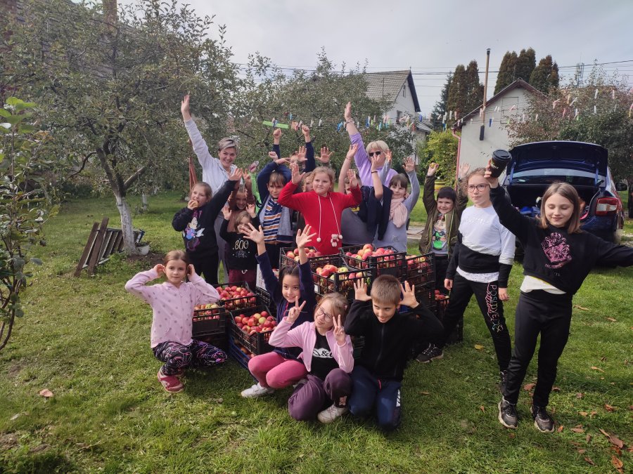 Marți s-au îndepărtat puțin de Sf. Gheorghe, dar nu și de natură, ci dimpotrivă. Au ajuns într-o mică livadă cu mere, pere, prune, struguri și gutui din Întorsura –Buzăului. În această zi memorabilă au aflat noi răspunsuri la întrebarea „Ce aș face cu un măr?” și și-au bucurat papilele gustative cu mere proaspete, suc de mere și plăcintă cu mere. După un asemenea răsfăț au cules cu mare grijă mere și le-au aranjat în lădițe pentru iernat.