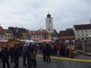 Potrivit acesteia, ajunși la Sibiu, elevii au urcat în Turnul cu Ceas, o punte de legătură între Piaţa Mică şi Piaţa Mare din centrul istoric al orașului. Ceasul, al cărui mecanism foarte vechi a fost realizat în anul 1494 de o firmă elvețiană, a fost admirat la penultimul etaj. De la înălţime, Turnul veghea oraşul în toate cele patru zări. Astfel, pe o parte s-a putut vedea Piața Mare unde era organizat Târgul de Crăciun ce reunea peste 90 de expozanți din țară și străinătate, pe altă parte se observa Piața Mică, iar pe celelalte două, casele tipic săsești cu arhitectura lor specifică. Un alt obiectiv vizitat a fost Muzeul de Istorie a Farmaciei, din Sibiu, deschis în anul 1972, și care cuprinde „peste 6.600 de piese ce aduc mărturii valoroase pentru evoluţia medicamentaţiei şi a tehnicilor farmaceutice de-a lungul a mai mult de trei secole şi jumătate.” (conform http://www.brukenthalmuseum.ro/farmacie/index.html).