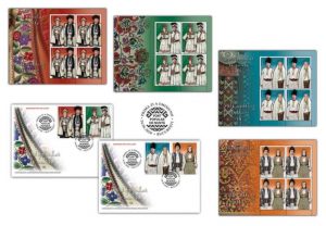 Potrivit unui comunicat al Romfilatelia, transmis miercuri AGERPRES, în cadrul acestei tematici, sunt prezentate costume populare de nuntă, în pereche, din zonele folclorice Maramureş, Muscel, Arad şi Vâlcea.