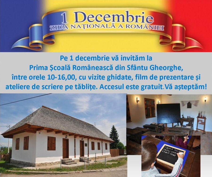 Șirul de evenimente organizate de Muzeul Național al Carpaților Răsăriteni, dedicate Zilei Naționale a României, se încheie luni, 1 decembrie, la Prima Școală Românească din Sfântu Gheorghe unde, între orele 10.00-16.00, publicul este așteptat cu vizite ghidate, film de prezentare și ateliere de scriere pe tăblițe. Accesul este gratuit.