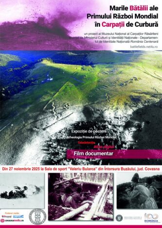 Joi, 27 noiembrie, la Sala de Sport ,,Valeriu Bularca” din orașul Întorsura Buzăului, la ora 10.00, are loc deschiderea Expoziției itinerante foto-documentară „Marile bătălii ale Primului Război Mondial din trecătorile Carpaților de Curbura – Teledetecție și arheologie aeriană”, care poate fi vizitată până în data de 20 februiarie 2026.