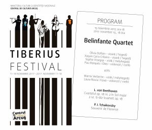 Cel de-al doilea recital din cadrul festivalului are loc astăzi, 15 noiembrie, de la ora 18.00, și este susținut de cvartetul „Belinfate” din Olanda. Își dau concursul: Olivia Doflein – vioară, Xaquin Carro Cribeiro – vioară, Sophie Vroegop – violă, Pau Marquès i Oleo – violoncel și Marnix Verberne – violă, Laura Roura i Foixà – violoncel. Programul cuprinde: Cvartetul op. 18 nr. 2 în Sol major, de Ludwig van Beethoven și „Souvenir de Florence”, de de Piotr Ilici Ceaikovski.