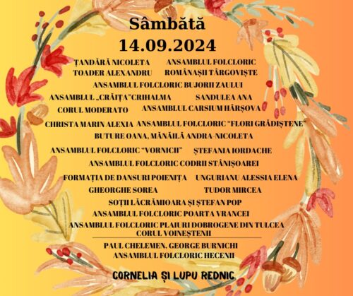 Magia festivalului este susținută de 17 ansambluri folclorice, 17 soliști si 3 coruri vocale din 14 județe ale țării cât și de un ansamblu folcloric (surpriză) din Republica Moldova.