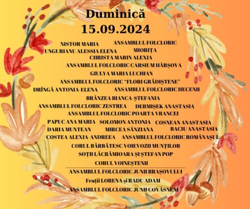 Cât de frumos a fost la ediția a II-a a Festivalului Folcloric „Datina Junilor” și ce interpreți sau ansambluri de dansuri populare au participat, aflați accesând https://mesageruldecovasna.ro/220-de-artisti-uniti-de-dragostea-pentru-traditie-au-participat-la-festivalul-folcloric-datina-junilor-de-la-covasna/