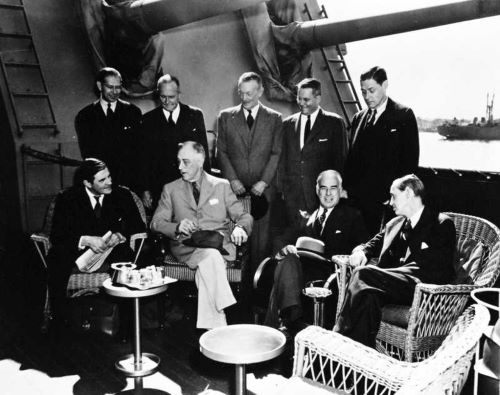 Președintele Franklin D. Roosevelt alături de Edward Stettinius și Harry Hopkins. – Sursa foto: history.navy.mil