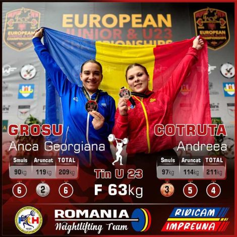 Mihaela Valentina Cambei a cucerit trei medalii de aur la cat. 53 kg, Under-23, iar Tiberiu Donose a câștigat aur la cat. 79 kg (smuls), juniori.