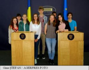 După fotografiile realizate pe scaunele miniştrilor, elevii sunt invitaţi în sala „Transilvania”, unde se desfăşoară festivitatea de premiere.