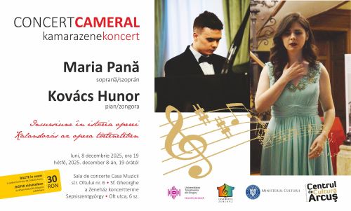 Centrul de Cultură Arcuș invită melomanii la o serată camerală de excepție care are loc astăzi, 8 decembrie, de la ora 19.00, în ambianța rafinată a Casei Muzicii din Sfântu Gheorghe.