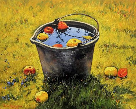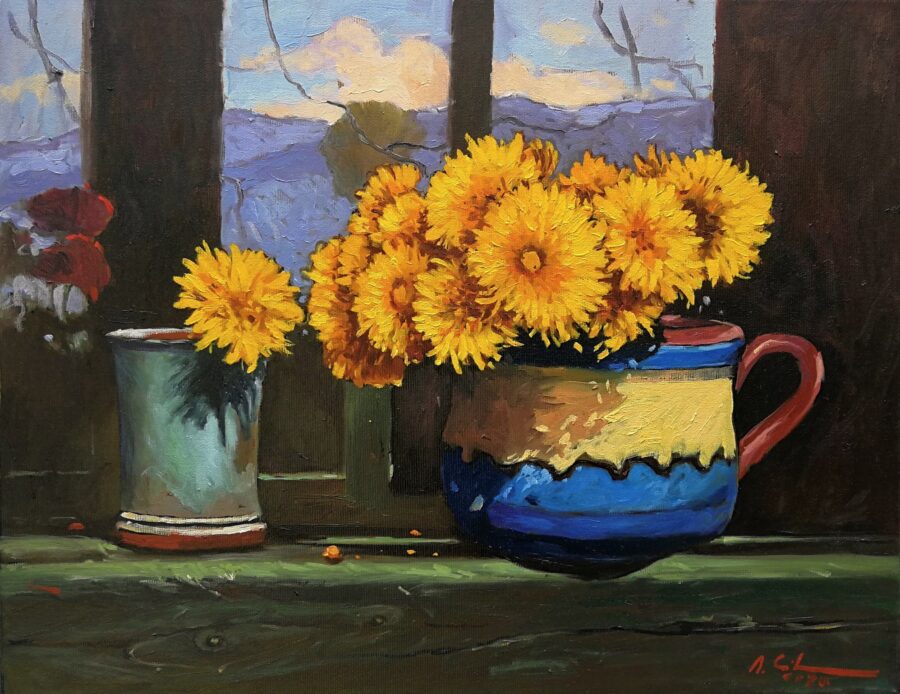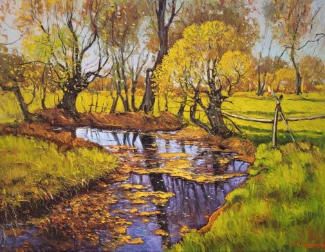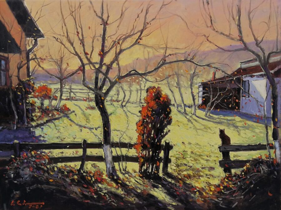 Revenind în cotidian, în pictura mea, nu atât culorile toamnei mă interesează, cât pustiul ei, amintirea, cețurile nesfârșite care se așterneau pe lunca Șomuzului, brumele argintii și mai ales plecarea păsărilor în care vedeam că trecerea prin timp, prin viață, este o realitate pe cât de neînțeleasă pentru mine, copil fiind, pe atât de palpabilă, lucru de care începusem să țin cont, în sensul că timpul nu-mi aparține, că el curge ireversibil și că rămânând tot mai puțin trebuie să-l prețuiesc tot mai mult, făcând ceea ce am de făcut ca trecător vremelnic ce sunt. Asta fac și acum, mă iau de guler cu mine însumi, mă iau la ceartă cu timpul, o ceartă absurdă desigur, încercând să-l îmblânzesc, crezând că-l pot țintui pe pânzele mele, oprindu-l cel puțin pentru o clipă. E o iluzie, evident, dar o iluzie dulce de care nu mă pot lipsi…