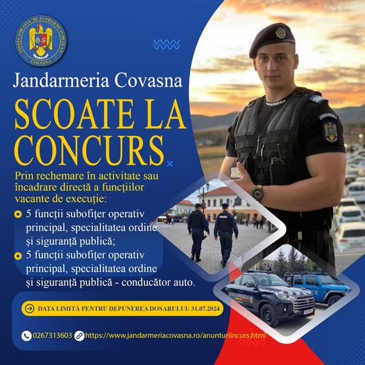 Vă așteptăm în echipa noastră!”, se mai arată în comunicatul Inspectoratul de Jandarmi Județean Covasna.