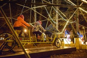 Copiii, tinerii, dar nu doar ei, pot face lumină în centru pentru al treilea an la rând, de data aceasta în rondul din Parcul Elisabeta, lângă Biserica Romano-Catolică Sfântul Iosif. Bicicleta cu trei locuri este conectată la instalaţia din copacii aflaţi în jurul rondului, dar şi la scaunele în formă de hexagon și la un geodom pe care putem aprinde lumini în funcție de forța pedalării. Instalația oferă momente de recreere excelentă în aer liber pentru întreaga familie.