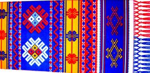 Iată că societatea românească interbelică avea organizată producţia de artă populară. Urma. într-um colţ al marii săli principale, Banatul, „cu coloritul viu şi strigător, dar nespus de armonios, în care roşul de toate nuan¬ţele predomină vesel”. Doamna Marilina Bocu s-a ocupat de dezvoltarea industrializării artei ţesăturilor şi cusăturilor bănăţene, „în special după răsboiu, ajutând prin aceasta văduvele şi orfanele de răsboiu din acea provincie”. Aici „Roşul aprins se desfăta în toate gamele, lângă albastrul potolit şi portocaliul care pălea până la galbenul lămâie” şi ţesăturile erau „vopsite vegetal din flori şi rădăcini de care d-na Bocu se ocupă personal, o adevărată minune de colori”. Toate „puteau rivaliza cu ultimile producţiuni străine în artă decorativă”. Urmau colecţiile celor trei muzee din Transilvania: al Astrei de la Sibiu, Muzeul din Deva şi Muzeul din Cluj. Din cel de la Sibiu se distingea colecţia Maria Cosma din Sibiu, „cu ţesăturile în mătase şi modele de o inedită valoare” (vezi foto o ţesătură color din această colecţie). Muzeul din Deva a prezentat, printre altele, şi o minunată colecţie de ţesături şi cusături din ţinuturile Hunedoarei şi minunate porturi de pădurence, din jurul Haţegului. Muzeul din Cluj a fost prezent cu „câteva covoare vechi, foarte frumoase, precum şi câteva vâlnice şi cămăşi interesante de prin satele din jurul Clujului”. Mai era în expoziţie o „colecţie de porturi de la Bran, Râşnov şi foarte frumoasele porturi femeieşti din Şchei, Braşov, cu vechi urcioare şi talere din ţinutul Făgăraşului”, achiziţionate de doamna Voicu Niţescu.