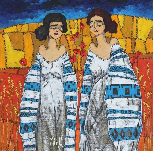 Artistul spune că folosind culorile albastru-galben/auriu-roșu ajungi la o combinaţie extraordinară. Pentru a ne convinge că e așa, e de ajuns să-i privim lucrările. Să pătrundem în lumea pictată a lui MihU., pentru a descoperi un sat viu, cu oameni frumoși.