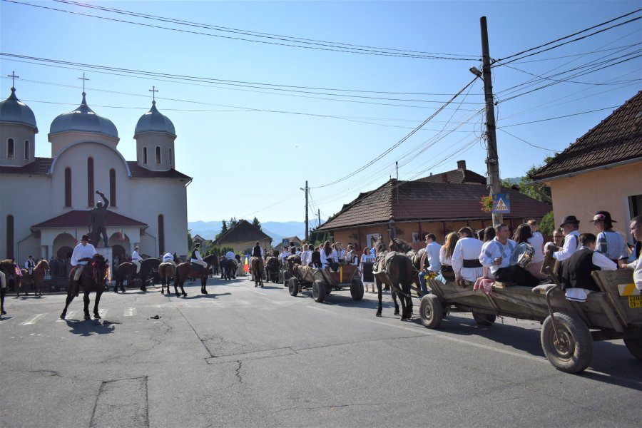 Sărbătoarea începe de sâmbăta, când are loc „făcutul de flori”- tinerii fac florile din hârtie creponată colorată, care vor împodobi caii, ploștile, brazii de nuntă. Tot sâmbăta se împodobește Casa Nedeii și se pun brazii la poarta ei. Duminica, de dimineață, nuntașii, îmbrăcaţi în costume populare, urcă în căruțe și, împreună cu tineri călăreți, formează „alaiul mirelui”. Potrivit datinii, alaiul se formează în faţa Bisericii Ortodoxe „Înălţarea Domnului”, unde se primește binecuvântarea de la preotul paroh Ioan Ovidiu Măciucă.