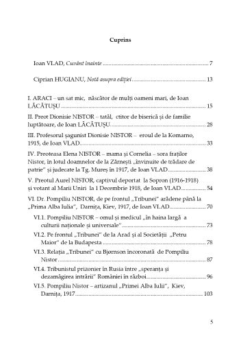 Nădăjduiesc să-i fi scos, prin această carte, pe eroii Nistorești de Araci, din uitare la lumină, să deschidem calea recunoștinței pentru jertfa lor și gestul ridicării unui bust protopopului Aurel Nistor la Sf. Gheorghe să fie urmat și de altele similare.