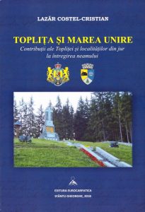 Volumul Topliţa şi Marea Unire: contribuţii ale Topliţei şi localităţilor din jur la întregirea neamului, apărut la editura Eurocarpatica, sub semenătura tânărului cercetător dr. Costel – Cristain Lazăr, face parte din proiectele dedicate aniversării Centenarului Marii Uniri, propunându-și ca obiectiv valorificarea editorială a surselor istorice, edite și inedite, referitoare la participarea românilor din Toplița și împrejurimi la pregătirea, înfăptuirea și consolidarea Marii Uniri.