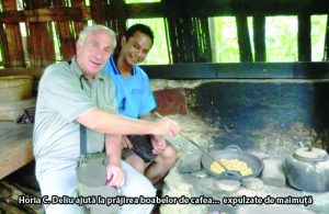 Un deliciu pe care nu puteam să-l ocolesc a fost cafeaua locală, una dintre cele mai aromate din lume. De la gazde am aflat că Vietnamul este al doilea mare exportator de cafea de pe Glob, liderul absolut fiind Brazilia, care oferă peste 10% din resursele mondiale. Am degustat…scârbit (!) și cel mai scump sortiment. E cafeaua obținută din boabe mâncate, nedigerate și…ejectate (pardon de expresie) de niște maimuțele. Le-am văzut de aproape și m-am fotografiat cu „dânsele”. Ba chiar am ajutat la prăjirea originalului sortiment numit „Cafeaua Civet” sau „Kopi Luwak”.
